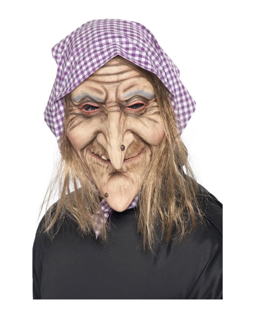 Lieferumfang: 1 x Alte Hexenmaske mit Kopftuch