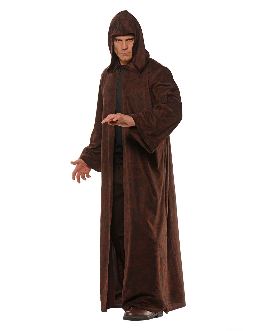 Der braun-schwarz melierte Kostüm Mantel mit Kapuze kann als geniales Accessoire für sämtliche Verkleidungen zu Halloween verwendet werden, egal ob für Mönchskostüme, Dämonenkostüme, Wegelagererkostüme, Fatasykostüme und Magier Outfits! Ein perfekter Umhang für LARP Events, historische Motto Partys und Halloween!