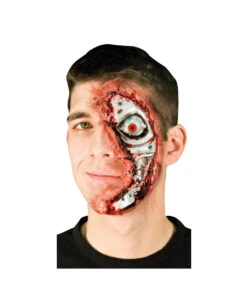 Mit der großen, über das halbe Gesicht reichende Terminator-Platine aus Latex wirst du zur Mischung aus Mensch und Maschine. Mit der Latex Applikation kannst du es mit jedem Robotor aufnehmen und wirst damit selber zu Kampfmaschine. Klar das bei dem perfekten Spezial Make Up auch der Terminator Angst bekommt.