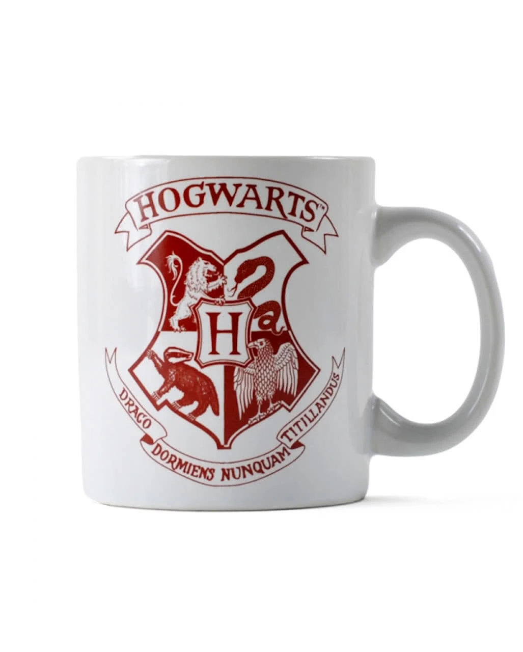 Die Harry Potter Kaffeetasse besticht durch ihr schönes Design. Auf der einen Seite der Lieblingstasse prangt das Emblem der Zauberschule Hogwarts samt der Wappen aller vier Häuser und des Schriftzugs „Draco dormiens nunquam titillandus“, was übersetzt soviel heißt wie „man soll keine schlafenden Drachen kitzeln“. Die andere Seite des Hogwarts Bechers wird von den Buchstaben „HP“ eingenommen, wobei das P die charakteristische Blitznarbe zeigt, und ein stilisierter Schnatz flattert um die Initialen. Auf dem Boden der Tasse bilden angedeutete Teeblätter die Gestalt eines schwarzen Hundes, des Grimms, den Professor Trelawney aus dem Teesatz las, als sie Harrys Zukunft weissagen wollte. Ein mikrowellen- und spülmaschinengeeigneter Geschenkartikel für Sammler und Fans der Filme und Bücher! Weitere Harry Potter Artikel wie die Grüne Harry Potter – Slytherin Müslischale und das Harry Potter Gryffindor Notizbuch haben wir ebenfalls im Horror-Shop.com!