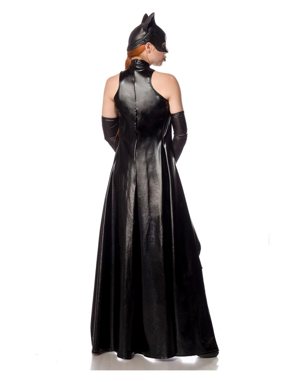 Das sexy Bat Girl Damenkostüm besteht aus einer Corsage und Leggings in Lederoptik, langen Handschuhen und einem Umhang im glänzender Wetlook Optik. Die im Lieferumfang enthaltene Fledermaus Kopfbedeckung ist aus Latex und vervollständigt das extravagante Fledermaus-Damenkostüm.