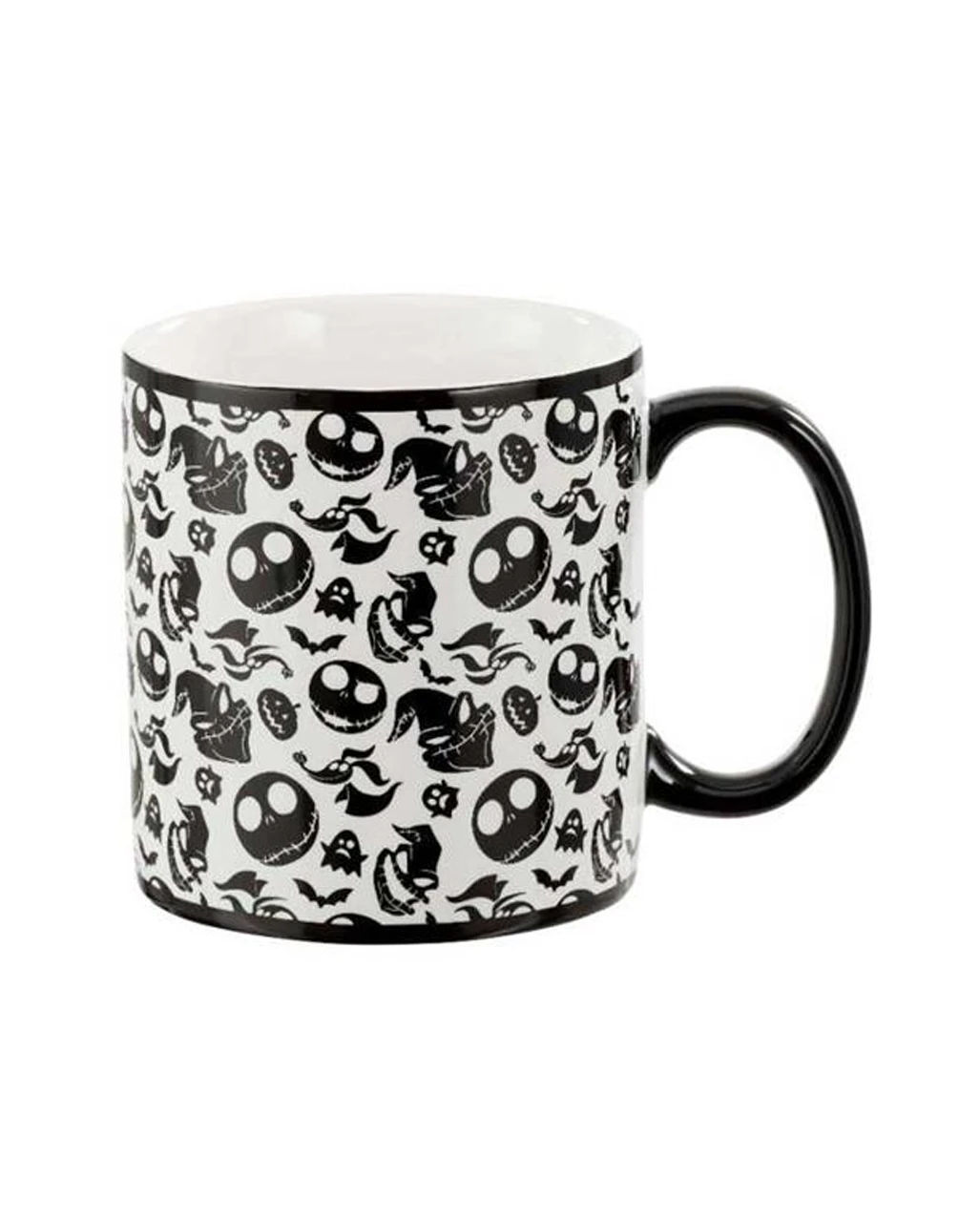 Die The Nightmare Before Christmas XL Tasse weist eine Füllmenge von ca. 590ml auf. Das Nightmare-before-Christmase-Merch entspricht einer gängigen Kaffeetasse, ist aber mit den Köpfen der Charaktere aus dem Film versehen: Jack Skellington, dem „Kürbiskönig“, Oogie Boogie, dem Schreckgespenst sowie Zero, dem Geisterhund! Zusätzlich verzieren mehrere Kürbisse und Gespenster ebenfalls in Schwarz und Weiß gehalten deine NIghtmare-before-Christmas-Tasse! Noch mehr Nightmare before Christmas Geschenkideen und Fanartikel wie den The Nightmare before Christmas Funko Pop! Pen Topper und die The Nightmare before Christmas Jack & Bones Gläser findest du ebenfalls im Horror-Shop.com!