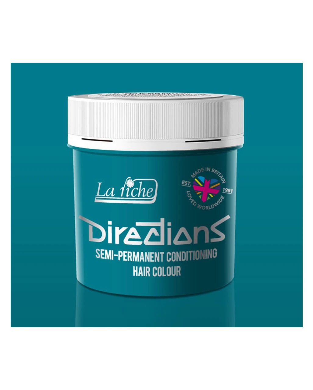 Spätestens seit Lady Gaga in ihren Hit „You and I“ mit einer Mähne in türkis zu sehen war, ist der wunderschöne blauton total angesagt. Das klare und frische Turquoise von Directions ist eine begehrte Nuance und seit langem schon in der Punk, Rockabilly und Gothic Szene hoch im Trend. Egal ob kleine Highlights oder als Komplettfärbung, diese Haartönung sieht immer Klasse aus.