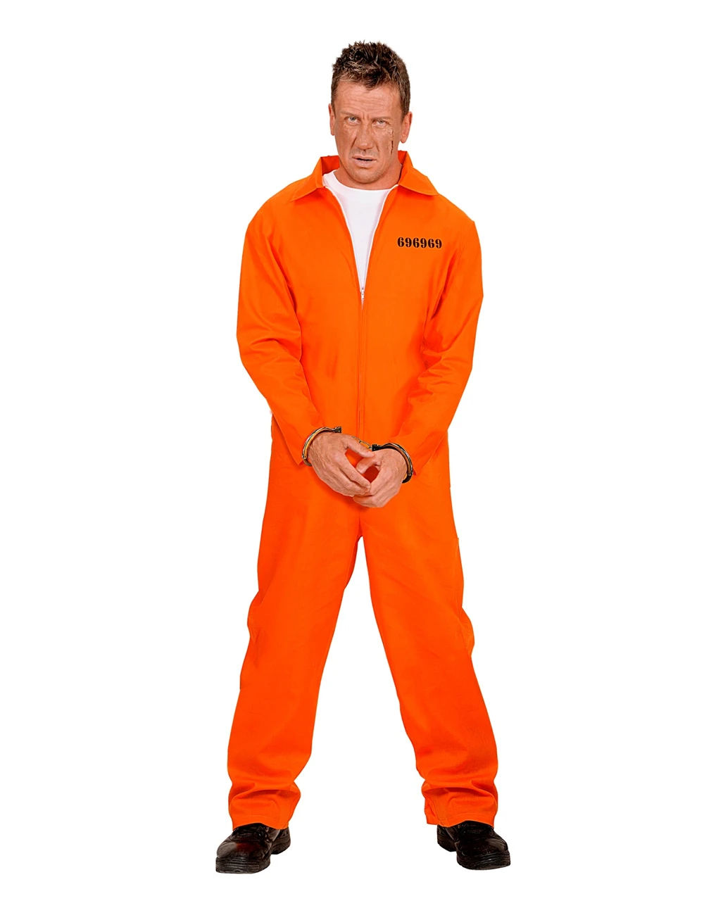 Lieferumfang: 1x US-Häftling Kostüm mit Handschellen