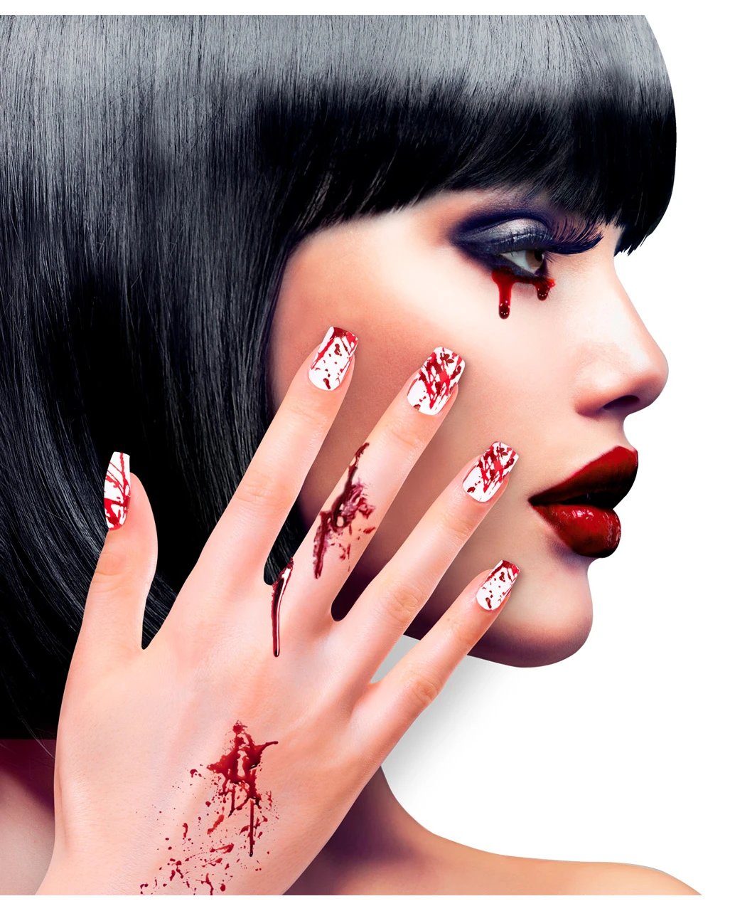 Weiße Fingernägel mit Blutspritzer 12 St.
